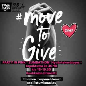 Tule mukaan tekemään hyvää Zumbaamalla. Tiina&Tero ZumbaTeam järjestää hyväntekeväisyys PARTY IN PINK ZUMBATHON-tunnin Graniitissa keskiviikkona 30.10. klo 18-19.30. Tunnille ovat tervetulleita kaikki! Halutessasi voit lahjoittaa rahaa keräyslippaaseen. Illan aikana kertynyt…
